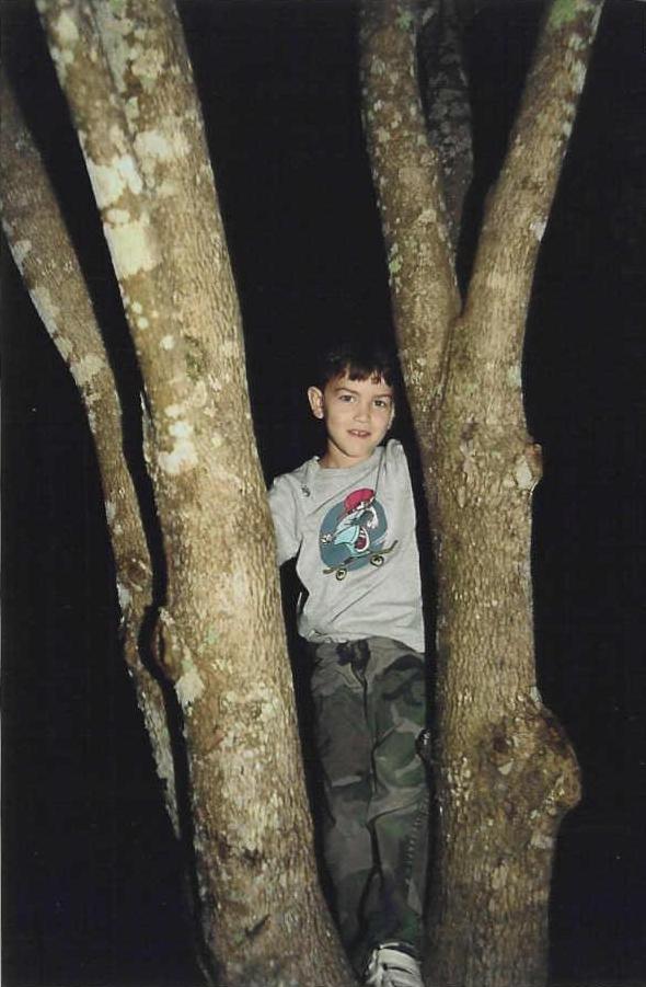 Nephew Jonathan Witt in the tree waiting for supper.